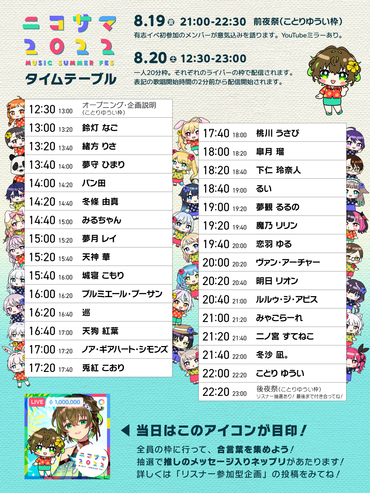 やあやあ、僕はノア。ノアギアハートシモンズだ 今回は珍しく季節にあったセトリを準備してきたよ! 前回のにーこうはくに参戦し忘れたぶん今回は楽しんでいくよ! みんなも盛り上がっていこうね!